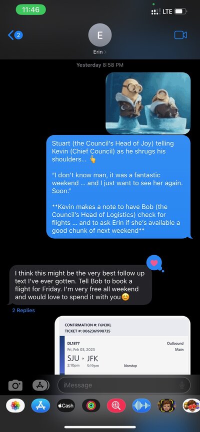 Turns out Anthony was living in Puerto Rico, and flying to Miami and Puerto Rico to date. I wasn't planning on getting myself into a long distance relationship but unfortunately for me, the date went fantastically well. And the second date? Even better. And after the third date in one week (with multiple push backs of his flight and extensions of his hotel room) Anthony asked me like a weirdo "I am no longer planning to see anyone else, how would you like me to pursue you?" And after two and a half years of lackluster casual dating in NYC, I shockingly found it quite endearing.